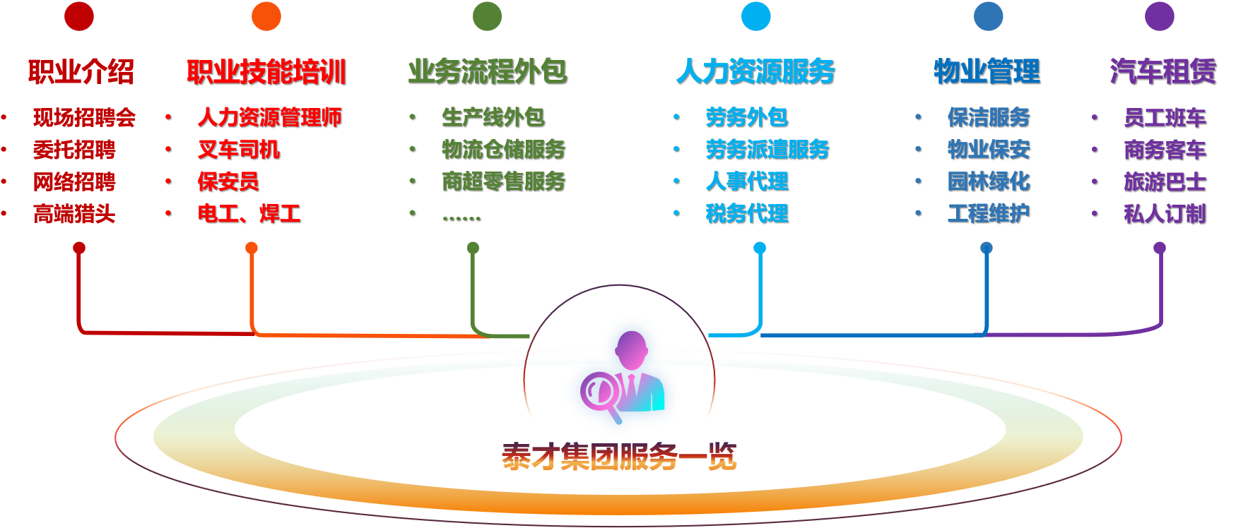 上海泰才企业(集团)有限公司是集人力资源服务HRO(即劳务派遣、劳务外包、人力资源市场等),业务流程外包BPO(即产线外包、项目流程外包等),职业技能培训,创业就业培训,人才(员工)公寓,供应链&仓储服务、物流运输、物业托管服务(园林绿化、保洁),汽车租赁服务,餐饮(员工食堂)等综合服务型集团公司。